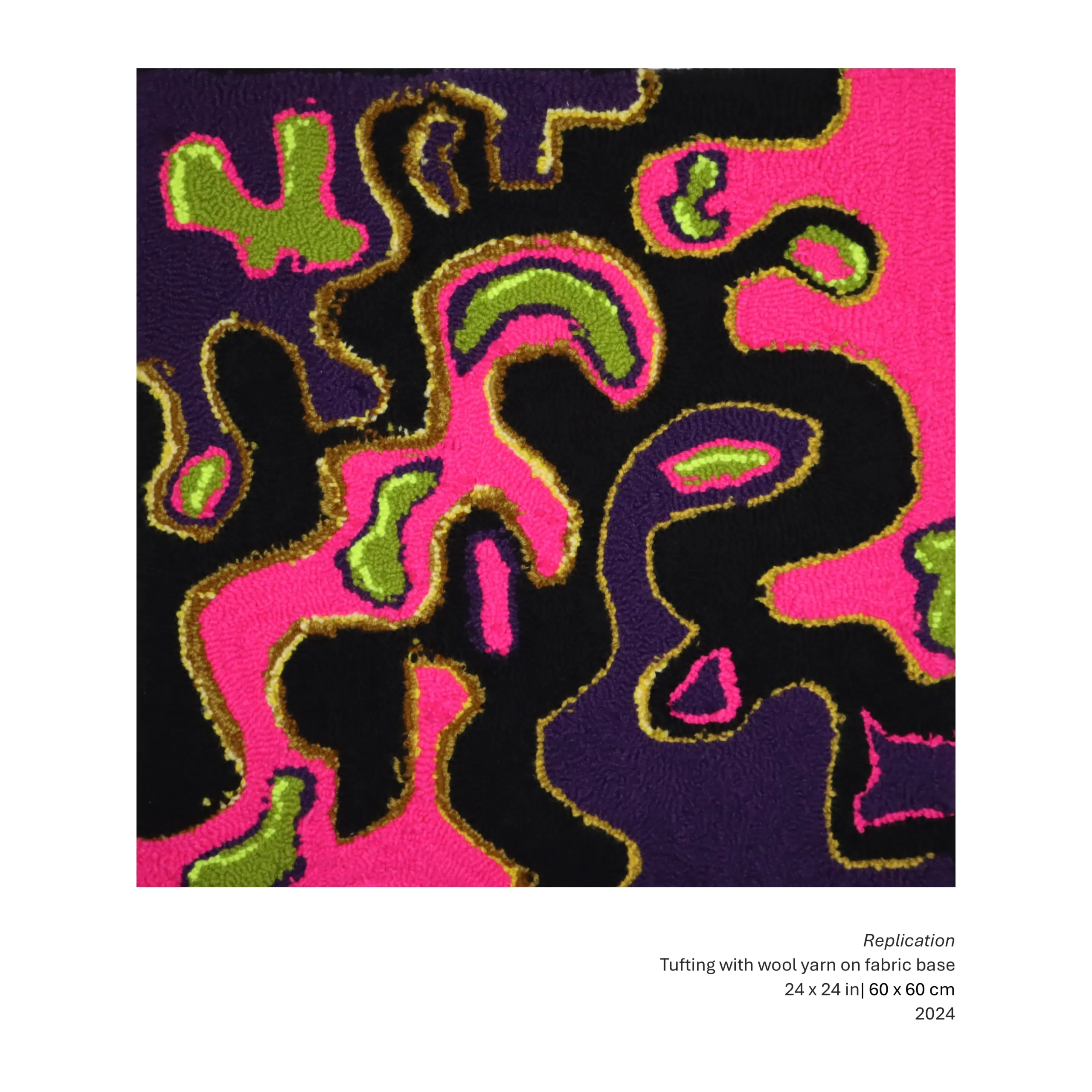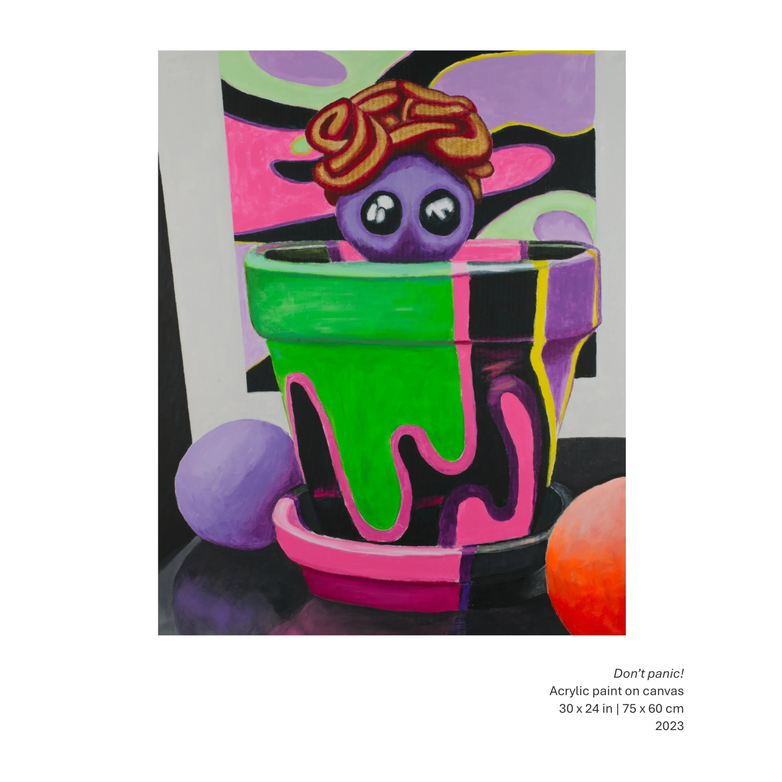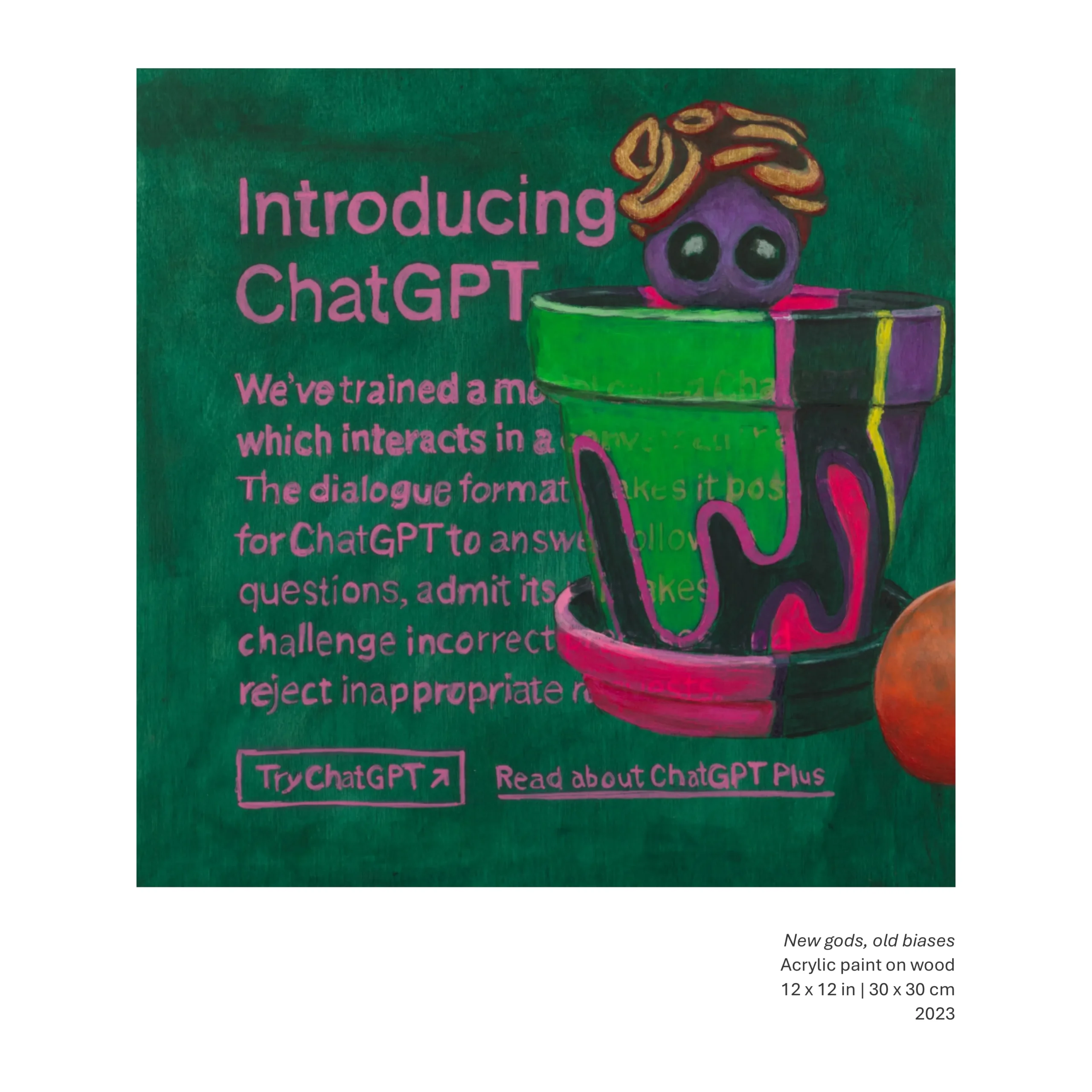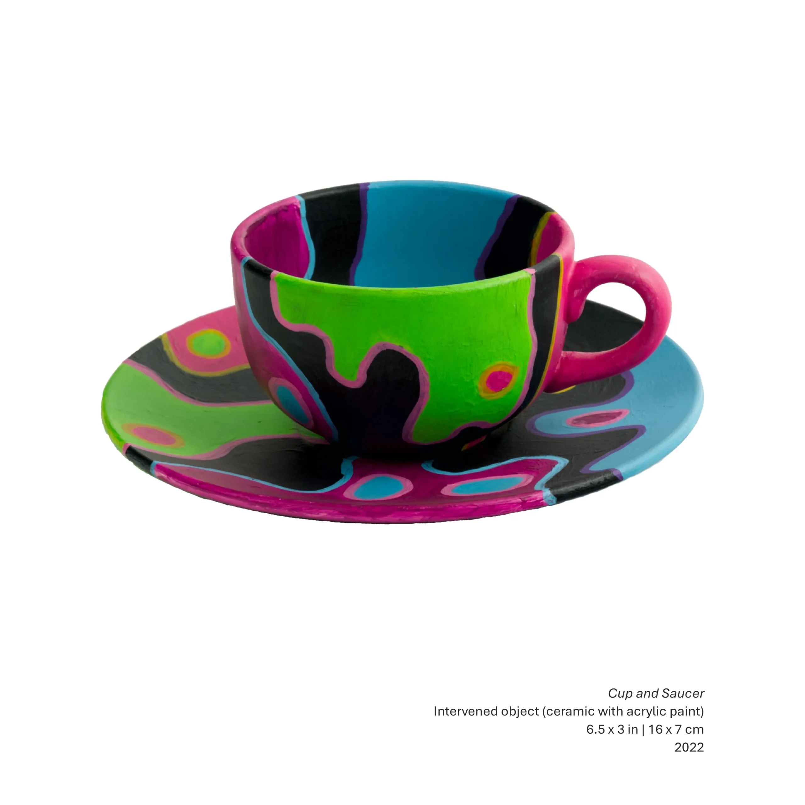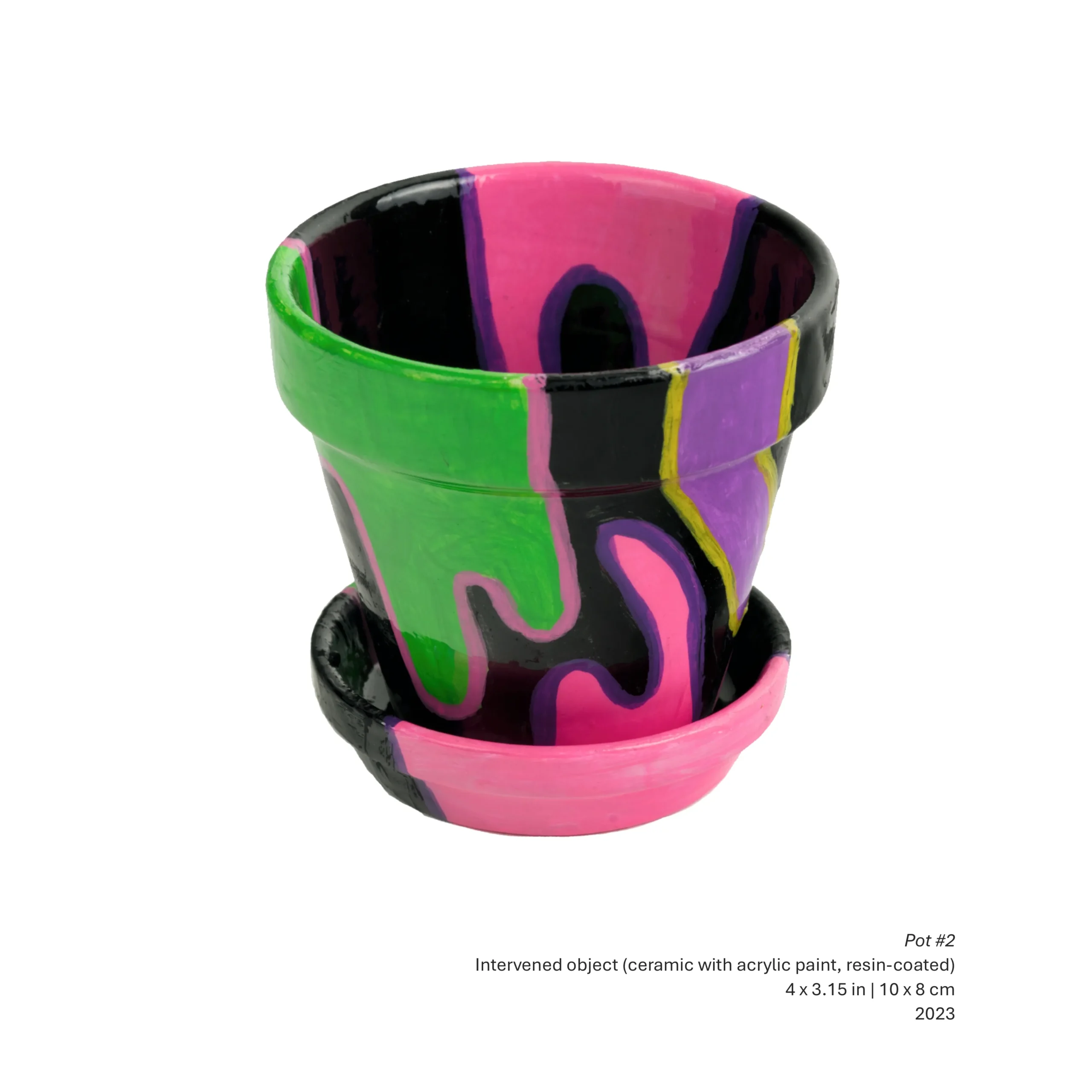 In When Life Imitates AI, Yuskadd invites us to reflect on a fascinating and uncertain future: What will happen when life begins to emulate artificial intelligence? Through the recreation of her own pieces in paintings and objects, Yuskadd draws a parallel with algorithms that generate images based on pre existing visual data.